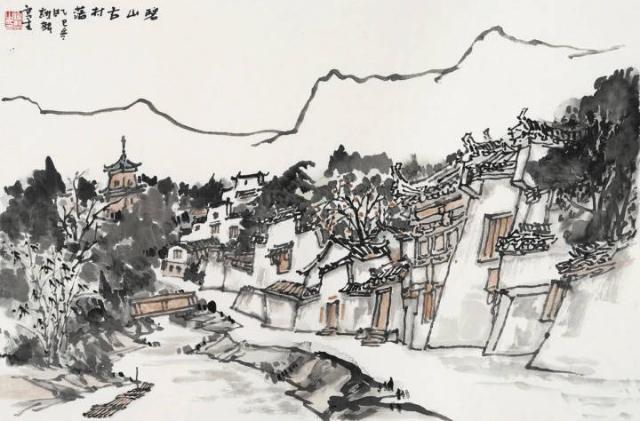 谢麟画作《碧山古村落》。主办方供图