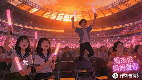 高三毕业的那个夏天,我和同桌瞒着家长,用攒了半年的零花钱买了周杰伦演唱会的看台票。进场时夕阳刚好落在体育馆的穹顶,橙色的光透过缝隙洒在人潮里,每个人手里都举着粉色荧光棒,像一片会呼吸的星海。