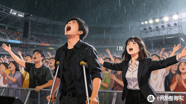 唱《倔强》的时候,全场没人再躲雨。所有人仰着头,任凭雨水打在脸上,跟着“我不怕千万人阻挡,只怕自己投降”嘶吼。前排有个男生举着拐杖——后来才知道他刚做完膝盖手术,硬是拄着拐杖来的。那一刻,雨水、汗水、眼泪混在一起,狼狈却滚烫。